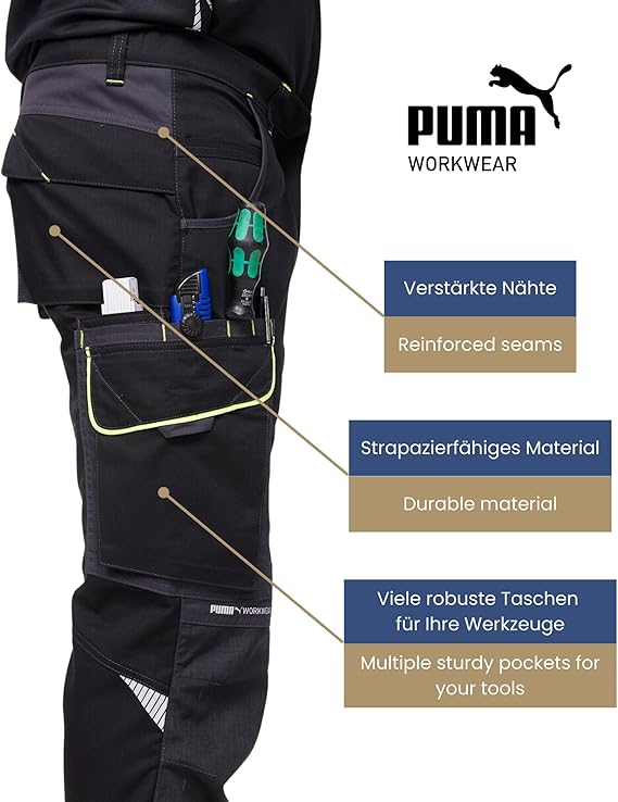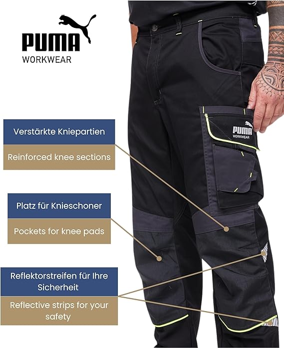 Výbava: kalhoty mají až devět kapes různých velikostí, na nářadí, mobilní telefony a další. Kalhoty jsou navíc opatřeny zesíleným nylonem a různými reflexními prvky na různých místech, aby byly viditelné i v noci.