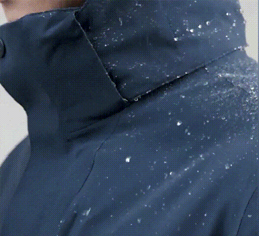 Nastříkejte vodu přímo na bundu a hned uvidíte, jak z bundy klouže voda, stejně jako z pláštěnky.