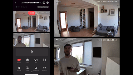 Las cámaras duales de 125° con un paneo horizontal de 55° siguen el movimiento de un ángulo a otro, eliminando los puntos ciegos y ofreciendo una vista ultraancha en 3K (2960 × 1665). A diferencia de las cámaras convencionales que pierden la imagen en las esquinas, aquí disfrutas de una cobertura continua y sin interrupciones.