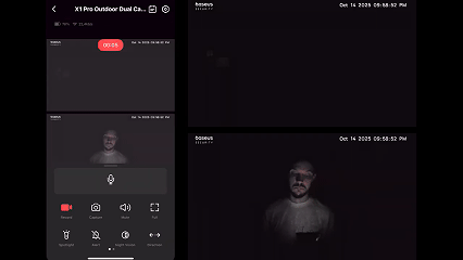 ¡Alerta de movimiento en el exterior! El sistema de doble cámara está siguiendo una actividad sospechosa cerca de la casa. Abre la aplicación para ver la monitorización en directo.