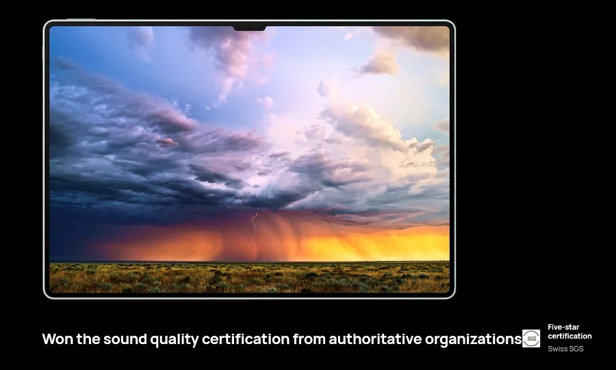 Esta gran pantalla OLED flexible de 13,2 pulgadas1 es un deleite para la vista. La relación pantalla-cuerpo ultrabaja del 94 % proporciona un disfrute visual casi infinito en la pantalla gigante, y la relación de productividad dorada de 3:2 garantiza el uso completo de la tecnología de visualización y una transición suave de las sombras. Los detalles hacen que ver la película se sienta inmersivo.