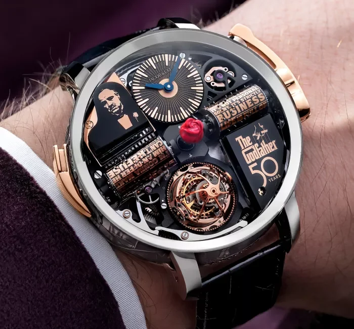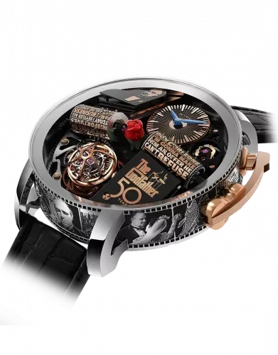 Изданието за 50-тата годишнина на Godfather of the Opera съчетава света на ултра високото часовникарство с удивителната сложност на механична музикална кутия, възпроизвеждайки вълнуващата тематична музика от The Godfather. Тази ограничена колекция от 50 броя е зашеметяващ кинематографичен, графичен и музикален трибют към култовата класика на Франсис Форд Копола, надминаващ всички предишни издания. Това е достойно и символично честване на един филм, който навършва 50 години, без да остарява ни най-малко.