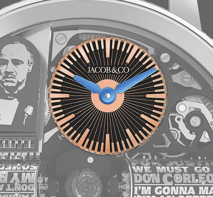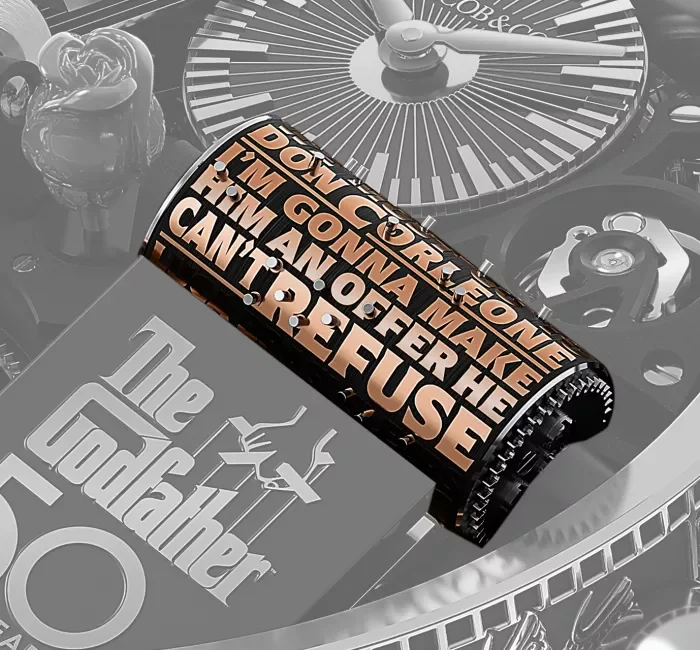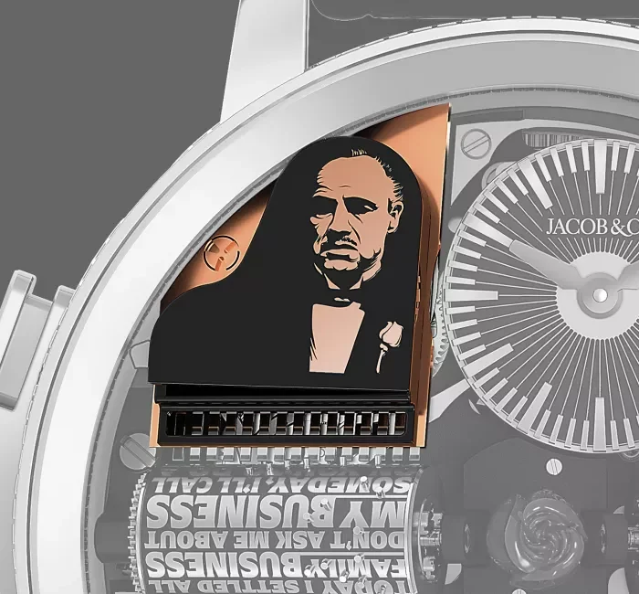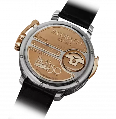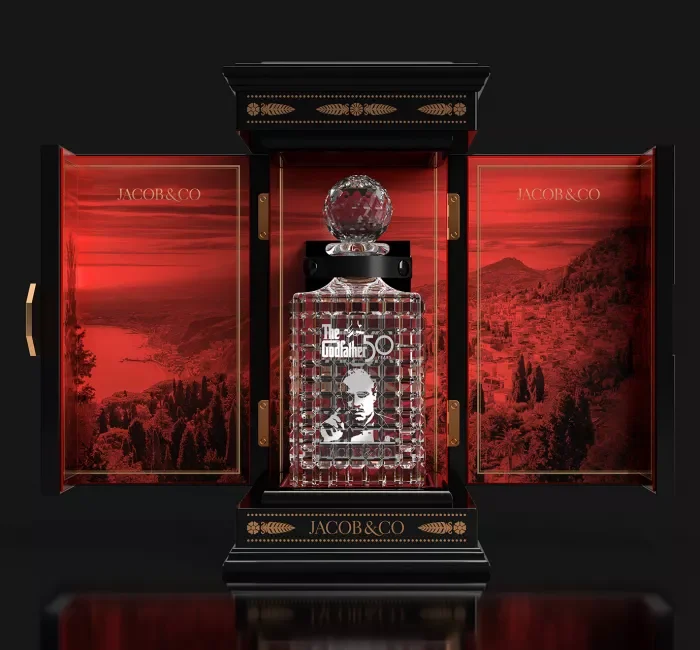 50-ото юбилейно издание на „Кръстникът на операта“ заема специално място в колекцията на Jacob & Co. Неговият уникален, стратегически, иновативен, емоционален и графичен статус е допълнително подчертан от специална дървена кутия, облицована с червено кадифе. Включва кристална гарафа с отпечатъци с висока разделителна способност на Марлон Брандо и логото на Godfather.