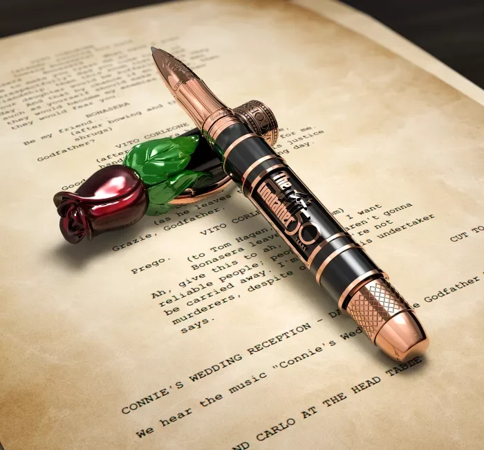 Той също така включва чисто нова версия на писалката Godfather, която е неразделна част от вселената на Jacob & Co. кръстник. Тази черна целулоидна химикалка има голяма роза на капачката, боядисана с червен и зелен емайл.